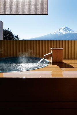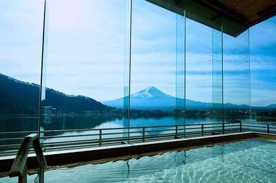 Hot spring inns in Fujikawaguchi-cho stand out for their mountain-lake fusion design. The Fujisan Onsen Ryokan features an open-air bath perched on a cliff overlooking Kawaguchi Lake, where guests soak while gazing at the snow-covered peak reflected in the water—known locally as the "Sky Bath".