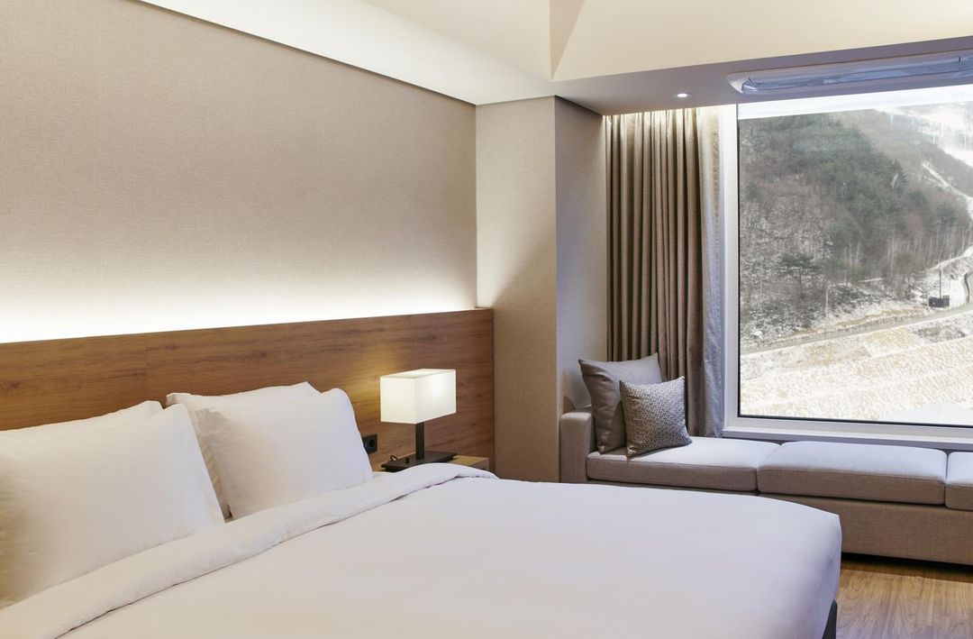 In Jeongseon County, the top eco-conscious hotel for nature enthusiasts is Taebaek Mountain Resort Hotel, nestled at the foot of the Taebaek Mountains. This sustainable retreat features wooden cabins with energy-efficient designs, rooftop gardens, and solar-powered facilities. Guests can enjoy panoramic forest views from private balconies and access to untouched hiking trails leading to Geumgok Stream and Dagwan Ridge. The hotel promotes low-impact tourism by offering reusable utensils, zero-waste practices, and guided nature walks led by local ecologists. Nearby, Jeongseon Eco Village provides glamping tents with composting toilets and organic farm-to-table meals made from local produce. Both properties emphasize harmony with nature, making them ideal for travelers seeking authentic wilderness experiences while minimizing environmental impact.