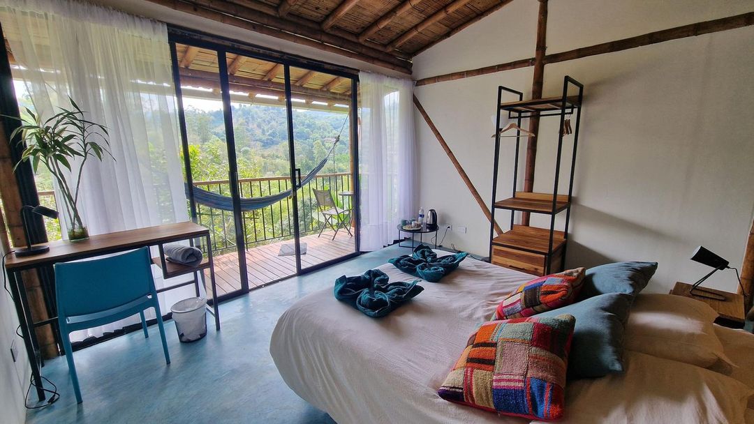 The hotel in Salento that offers the most breathtaking natural views is Casa Los, an eco-lodge nestled at the base of the Andes Mountains. Surrounded by dense cloud forest and overlooking the Cátaquira Valley, this sustainable retreat features private balconies in every room, perfect for watching sunrise paint the mist-covered peaks.