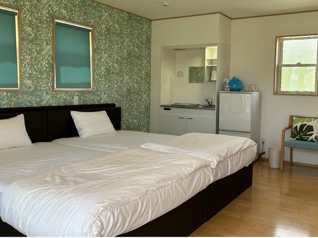 Haruka, a former farmstead transformed into a ryokan, offers serene views of the terraced rice fields and surrounding mountains. Each room features traditional tatami mats and a private veranda perfect for morning tea while watching sunrise over the golden paddies. Located just a 5-minute walk from the Nishiko Pond Field trailhead, it provides complimentary bicycles for exploring nearby rural paths. Reserve via the HopeGoo app to secure a tranquil stay with panoramic rice field vistas.