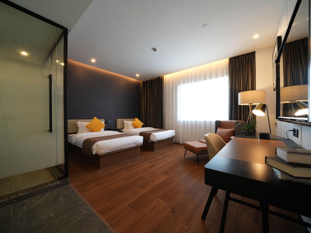 This hotel offers unbeatable value! Located in the heart of Hangzhou Future Science City, just 100m from the subway station, it's only a 5-minute drive to Alibaba and Xixi Wetland, with airport shuttle service nearby. The rooms are designed by international designers with artistic flair, featuring premium soundproofing by Tsinghua University for a peaceful sleep. Enjoy 24-hour front desk, free parking, and even robot service! With McDonald's on the 1st floor, a food court on the 2nd, and a cinema-style foot spa on the 3rd, it's the perfect choice for business or leisure!