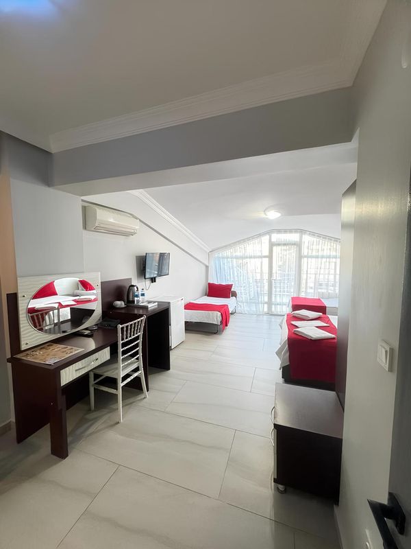 This hotel is a paradise for family vacations! With a water park and private beach to keep the kids entertained, adults can unwind at the spa or indulge in a Turkish bath. The kids' club and babysitting services let parents relax at the poolside bars. Two restaurants serve international cuisine, and there’s even a daily free reception to mingle. Just 5 minutes from the beach, plus free WiFi and 24-hour front desk service—it’s perfection!