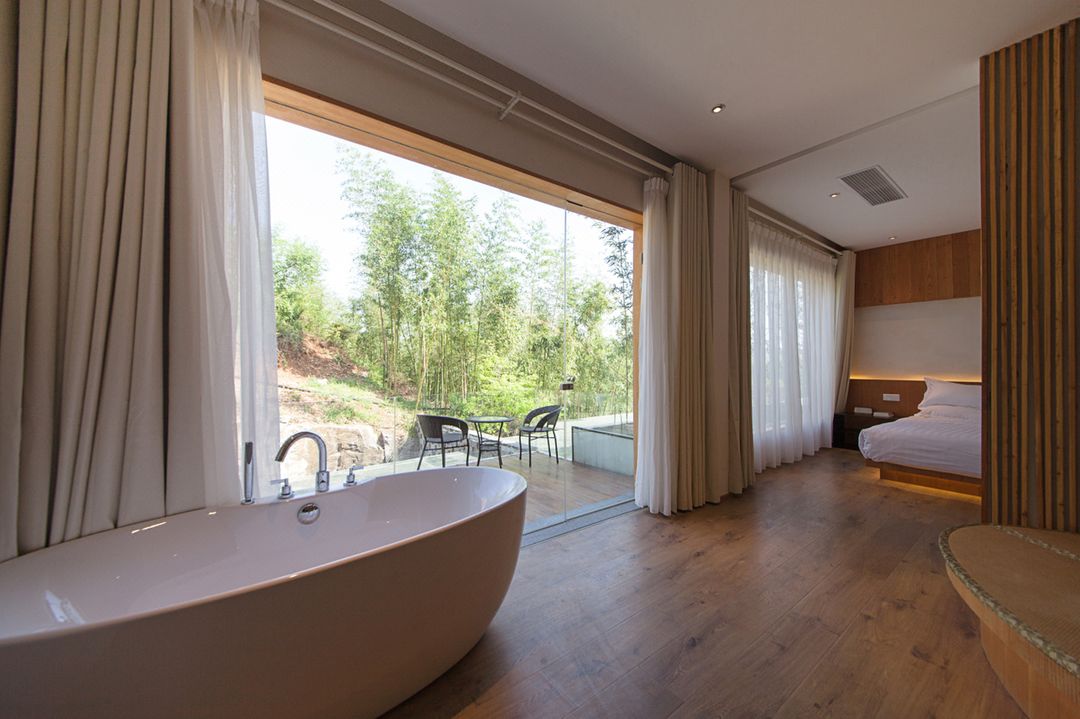 This is a hidden gem loved by mountains and lakes, where you can enjoy unobstructed lake views right from your window. At sunset, the lake turns golden, creating a perfect natural backdrop for photos. The 16 uniquely designed rooms offer great privacy, some even feature deep-soaking tubs or private hot springs, allowing you to relax while admiring the lake. The public areas are well-equipped with a cozy café, game room, outdoor camping zone, huge swimming pool, and multi-functional meeting hall, perfect for couples, families, or team gatherings. You can also enjoy BBQ, fishing, and fruit picking, making the most of nature's bounty!