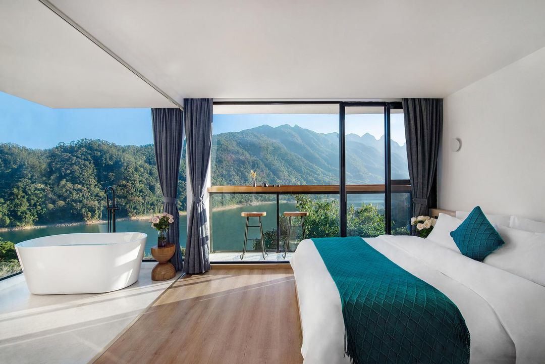 Nestled deep within Liuxi River National Forest Park, this art-infused retreat harmonizes with nature, offering a serene escape from urban chaos. The organic architecture dances with seasonal light, blending seamlessly into lakeside woodlands—a living poem. Families can bond over farm-to-table harvesting, lakeside picnics, or cozy home theater nights. Get up close with wildlife, capture breathtaking sunsets, and enjoy stress-free travel with airport transfers and childcare services. Crowned a 2024 top-rated hideaway, it’s a dream for art lovers and nature seekers alike.