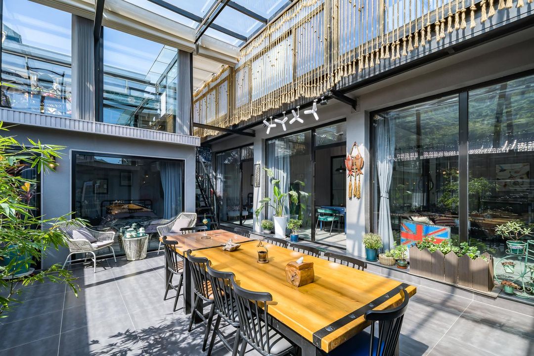 Nestled in the scenic Baihewan area of Huairou, this pet-friendly light luxury homestay is perfect for escaping the city hustle. With a sunlit reading room and a rooftop stargazing deck, you can enjoy peaceful nights under the stars with family and friends. Kids will love the play area and game room, while outdoor enthusiasts can indulge in camping, BBQ, or hiking to embrace the mountain retreat. The homestay features spacious common areas, including a courtyard with flowing water and a garden, all designed with a touch of life aesthetics. A perfect getaway for relaxation and fun!