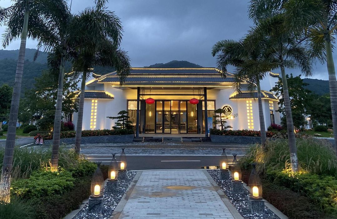 Tucked away in Conghua's hot spring district, this zen-inspired retreat blends Tang Dynasty aesthetics with Japanese minimalism. Each room features a private hot spring bath, some large enough for two, whether on the balcony or in the courtyard, offering the healing powers of the rare radon-rich thermal waters. The communal Jade Teapot Building, shaped like a teapot with floor-to-ceiling glass walls, is a photographer's dream, especially with its misty waterfall creek. Enjoy amenities like KTV, BBQ pits, and a kids' pool, perfect for families or group getaways. At night, don't miss the Jiuyan Bridge夜景 – pure magic!