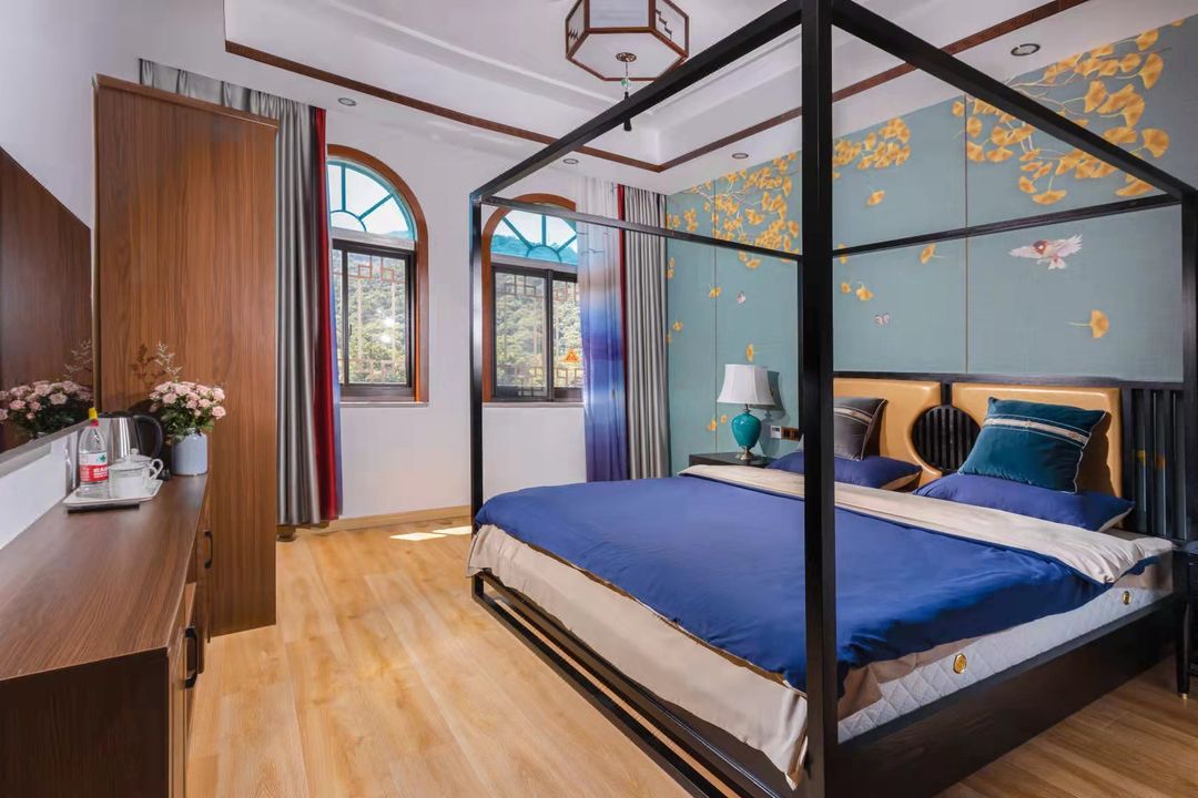 This is a hidden gem nestled in the Shushan Ecological Village, surrounded by the breathtaking beauty of Dayangshan National Forest Park. The B&B offers a variety of stylish rooms, all equipped with Kohler bathroom facilities, and features like a Chinese-style wooden home theater, small meeting room, and children's play pool, perfect for families and friends to unwind. Nature lovers will adore the scenic terrace and garden, where you can soak in the tranquility of rural life. Plus, it's pet-friendly, so bring your furry friends along for a memorable getaway!
