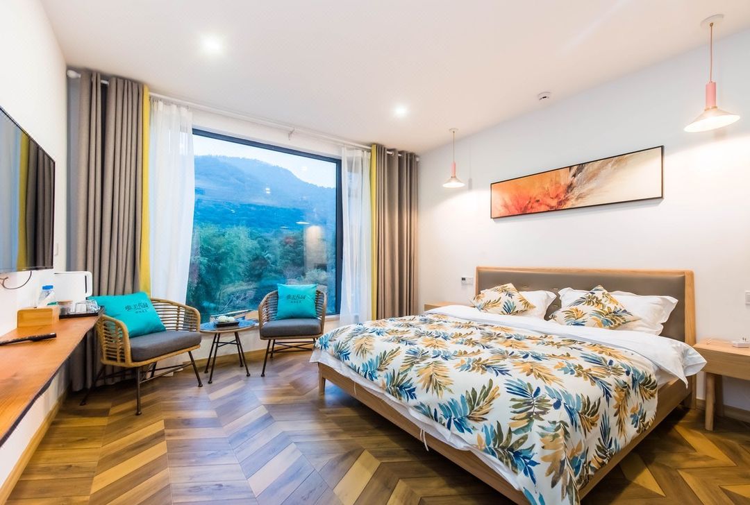 Looking for a getaway from the city? This is the perfect spot! Nestled in the mountains, surrounded by nature, with hot springs and a garden to relax in. Whether it's a family trip or a friends' gathering, there's something for everyone—kids' play area, KTV, and barbecue facilities. The friendly owner and excellent service make your stay even better. Don't miss the chance to try fruit picking and enjoy the Jiuyan Bridge night view. Come and experience it yourself!