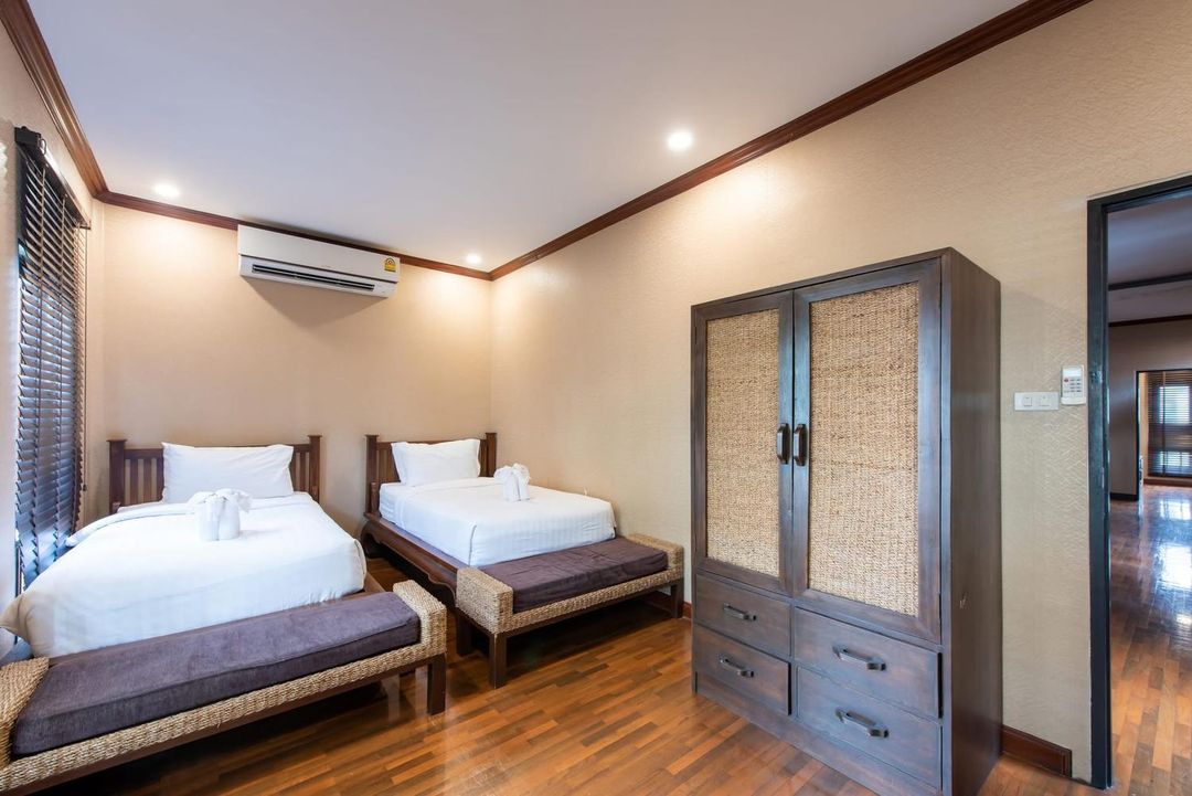 This Thai-style hotel is perfect for a getaway! Unwind at the pool or indulge in spa treatments, then chill at the bar or café. Rooms are fully equipped with AC and hairdryers, and you can enjoy room service for meals. Conveniently located near Suvarnabhumi Airport, with attractions like Siam Park City nearby. Free parking and laundry services make it ideal for both leisure and business trips!