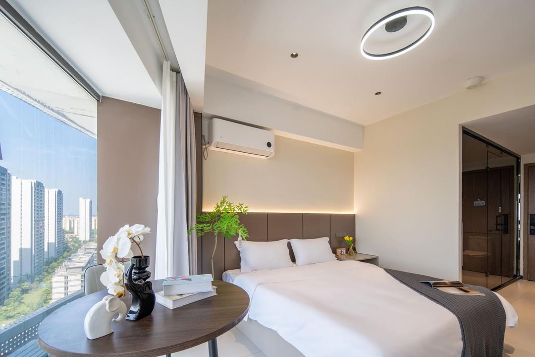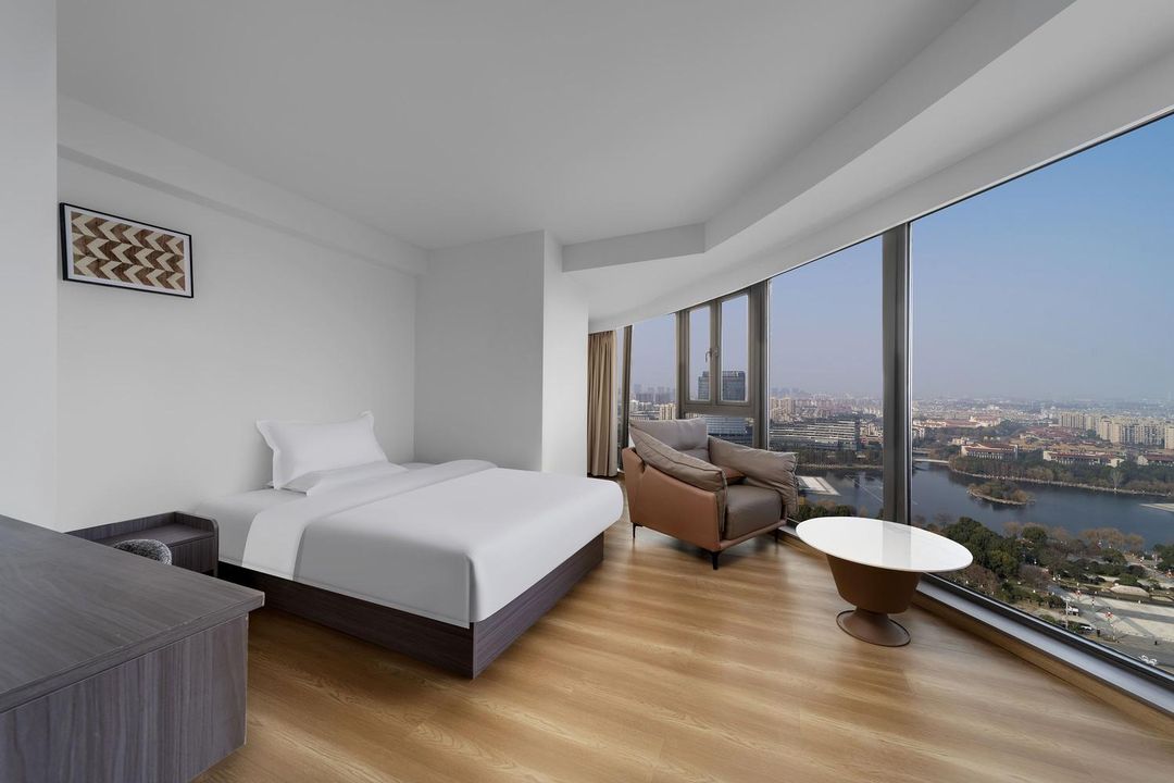 Nan Taihu Cloud Top Resort offers breathtaking views of both the lake and Baoyun Temple’s pagoda from its elevated sky garden suites. Constructed with sustainable materials and natural lighting, the rooms create a harmonious connection with nature. At sunset, guests gather on the lakeside terrace to enjoy tea while watching the temple’s lights glow against the horizon. Secure your stay via HopeGoo for premium view upgrades.