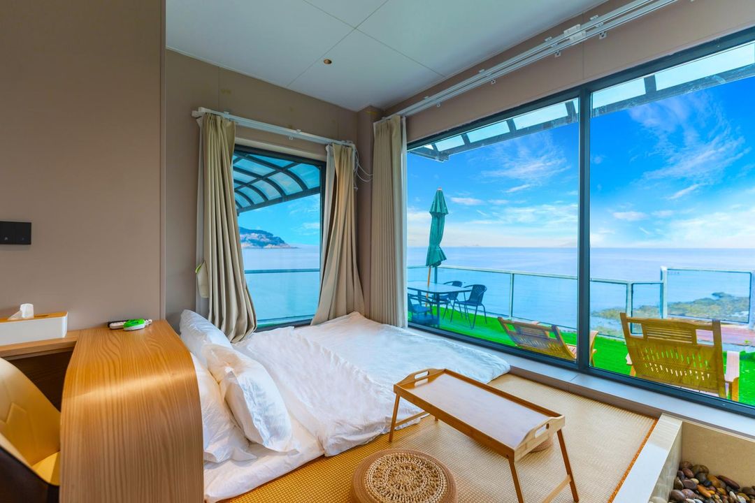 This is a dreamy seaside paradise where every room offers stunning views of Laoshan Mountain and the ocean, with a refreshing sea breeze. The homestay features a cafe and a seaview terrace, perfect for enjoying the breathtaking scenery. Ideal for family trips, it offers kids’ play areas and is pet-friendly, along with a laundry room and free parking. The service is attentive, and the environment is beautiful—you can even watch the sunrise over the sea from your bed. Come and experience it!