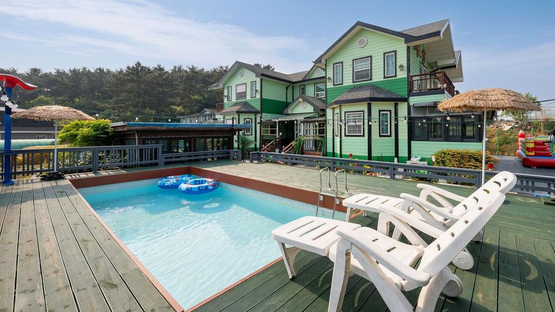 Taein Bay Resort offers direct access to Batgae Beach with private beach pathways and ocean-view rooms. Guests enjoy unobstructed sea vistas from their balconies, along with complimentary bicycles for exploring the coastal trails. The resort features an outdoor hot spring and traditional Korean bathhouse. For best availability, book through the HopeGoo app.