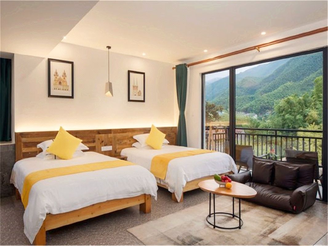 Escape the city hustle and unwind in this serene mountain retreat! Nestled in the Laoshan Scenic Area, this charming hotel features a 150㎡ multi-functional lounge for afternoon tea, movie nights, or cozy gatherings. The outdoor courtyard is perfect for BBQ parties and hot pot, with seasonal fruits ready for picking. Rooms include tatami, standard, and family options, all with balconies to enjoy the view. Easy access by car or public transport, with Beijiushui Scenic Spot nearby. Enjoy personalized butler service and a taste of slow living!