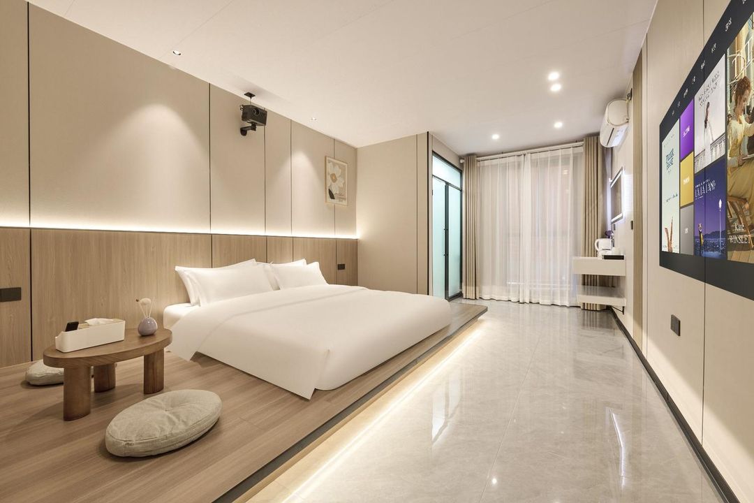 This is a versatile leisure hotel perfect for couples, families, or business trips! Enjoy 1080P HD projection with a 100-inch screen and Harman Kardon stereo sound for a cinematic experience. Love tea? The tea ceremony room features traditional Chinese rosewood tables and tea sets. Stay active with gym, basketball, and ping pong facilities. Conveniently located near seven colleges and the International Expo Center, plus free parking! The front desk offers warm service—ready to welcome you!