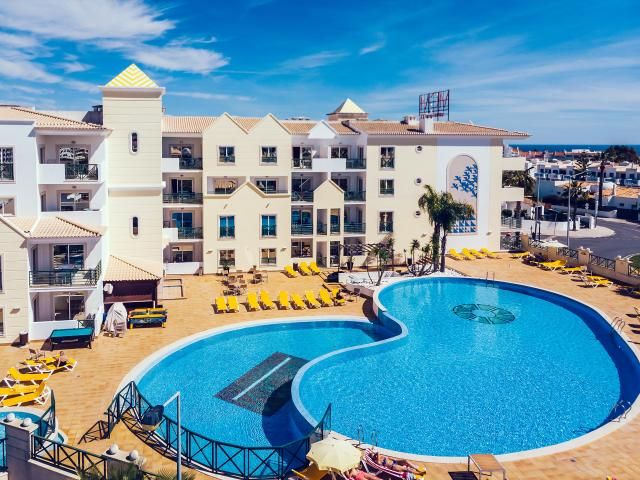 Hotel Alvor Praia is a top choice just a 5-minute walk from Castelo Beach, offering private beach access, a kids' pool, and spacious rooms with sea-view balconies. The hotel provides complimentary bicycles to explore the scenic Albufeira Coastal Trail, plus dedicated family activity zones for children. For best rates and room upgrades, book directly via the HopeGoo app.