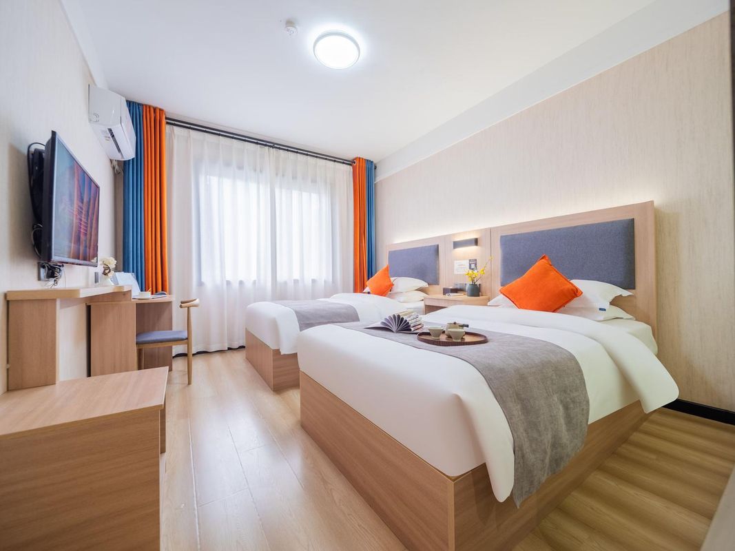 Weinan Skyview Inn stands out with its panoramic balcony rooms directly facing Central Square (Qianjin Road). Each room offers unobstructed views of the square’s central fountain and seasonal light installations. The rooftop terrace features a sky lounge with panoramic seating, perfect for sunset viewing. All rooms are equipped with soundproof windows and automated shading systems to ensure comfort. Reserve your scenic room early through the HopeGoo app for guaranteed availability.
