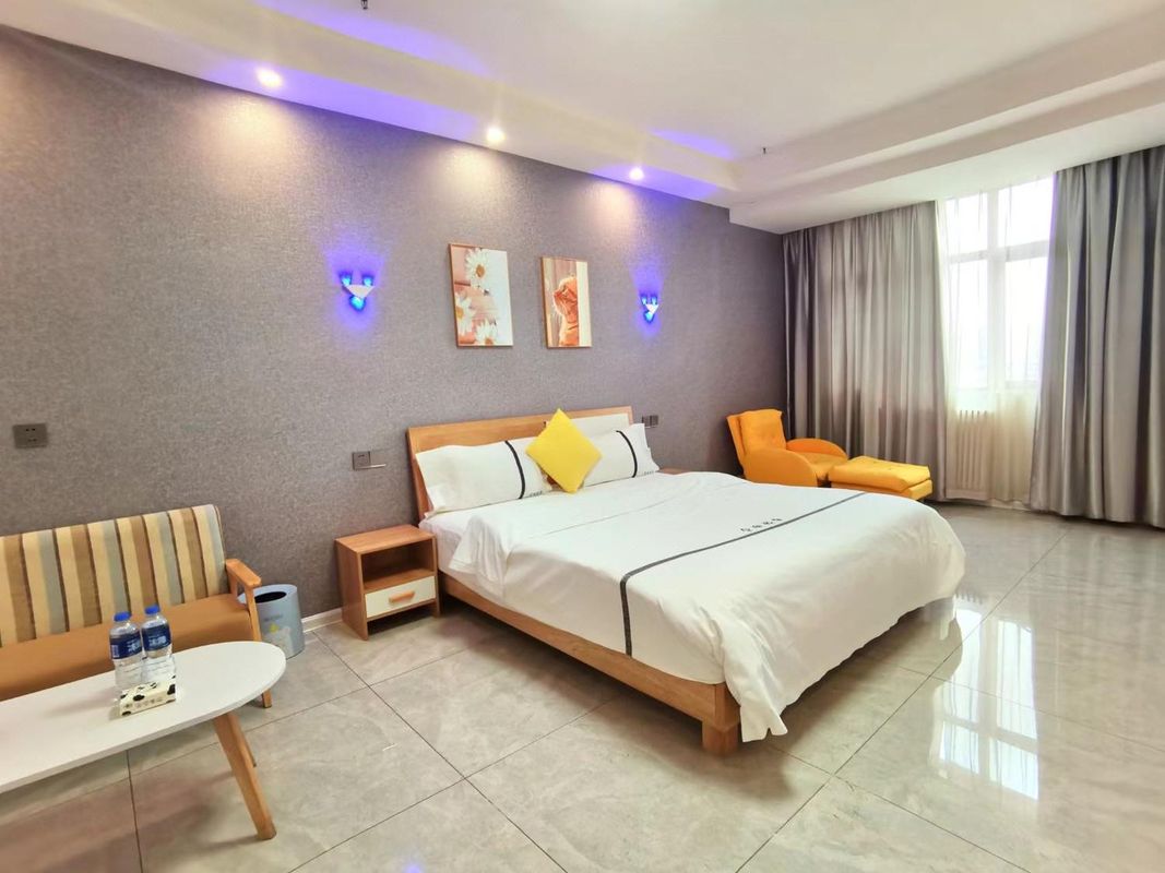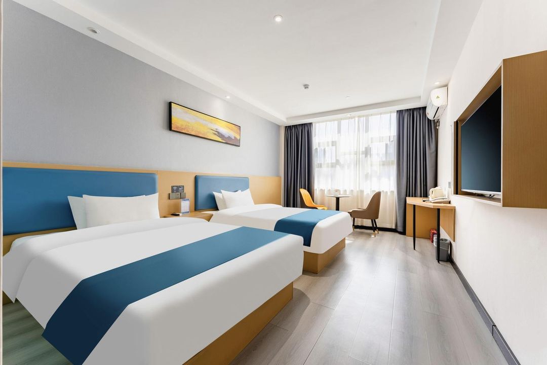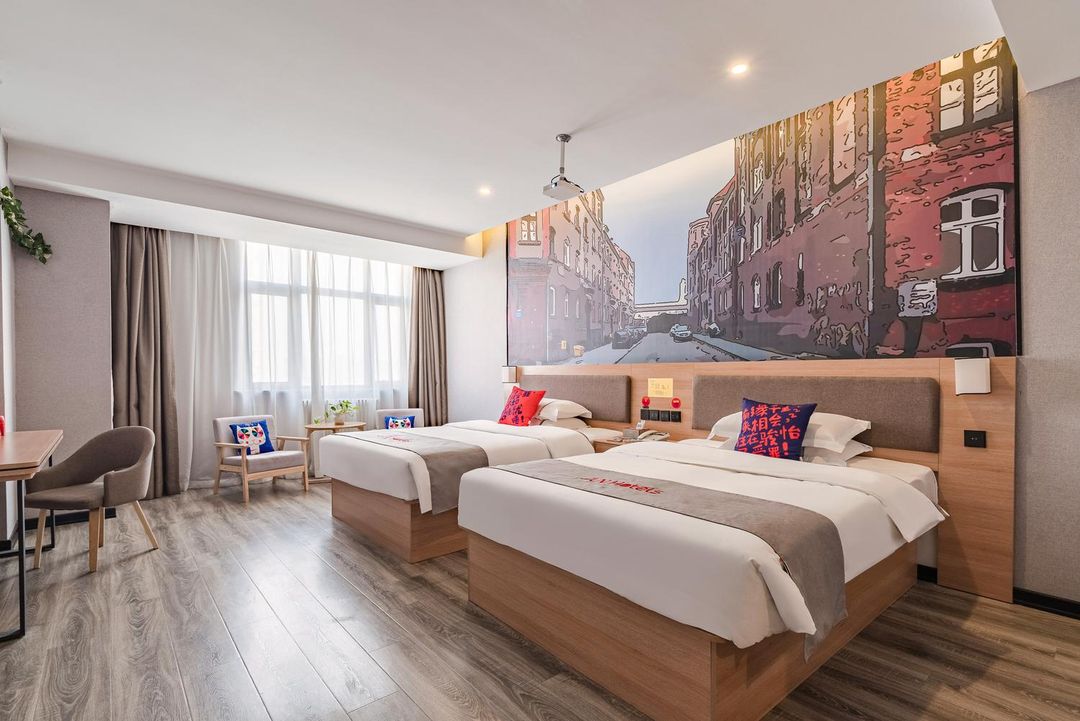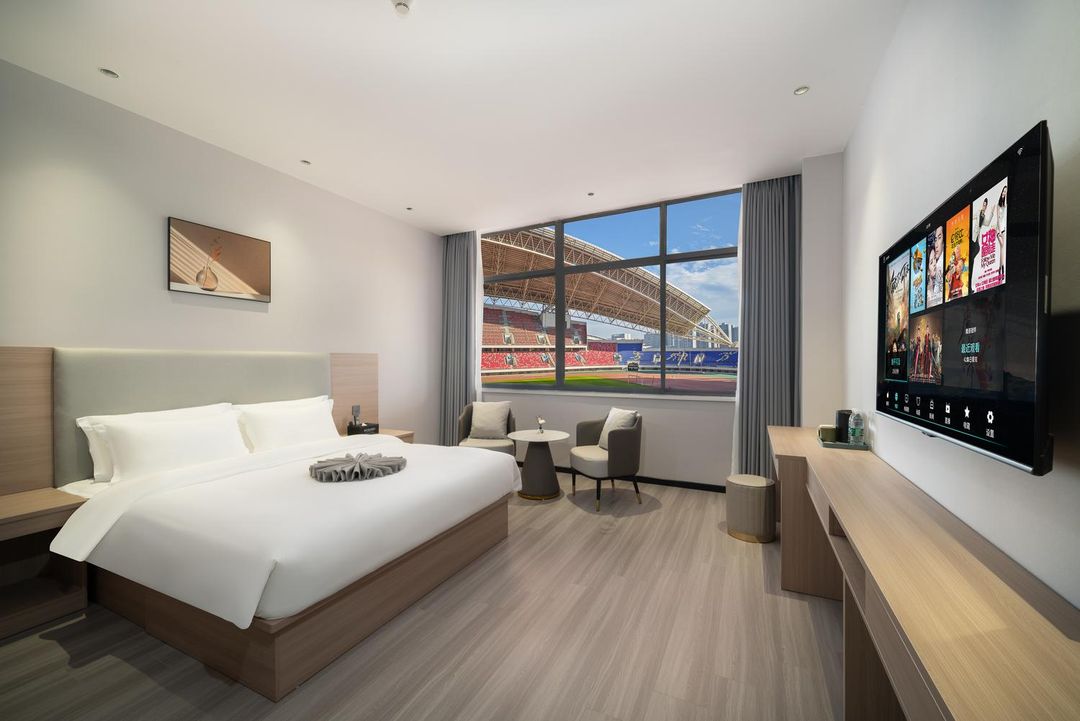 Weinan Skyview Inn stands out with its panoramic balcony rooms directly facing Central Square (Qianjin Road). Each room offers unobstructed views of the square’s central fountain and seasonal light installations. The rooftop terrace features a sky lounge with panoramic seating, perfect for sunset viewing. All rooms are equipped with soundproof windows and automated shading systems to ensure comfort. Reserve your scenic room early through the HopeGoo app for guaranteed availability.