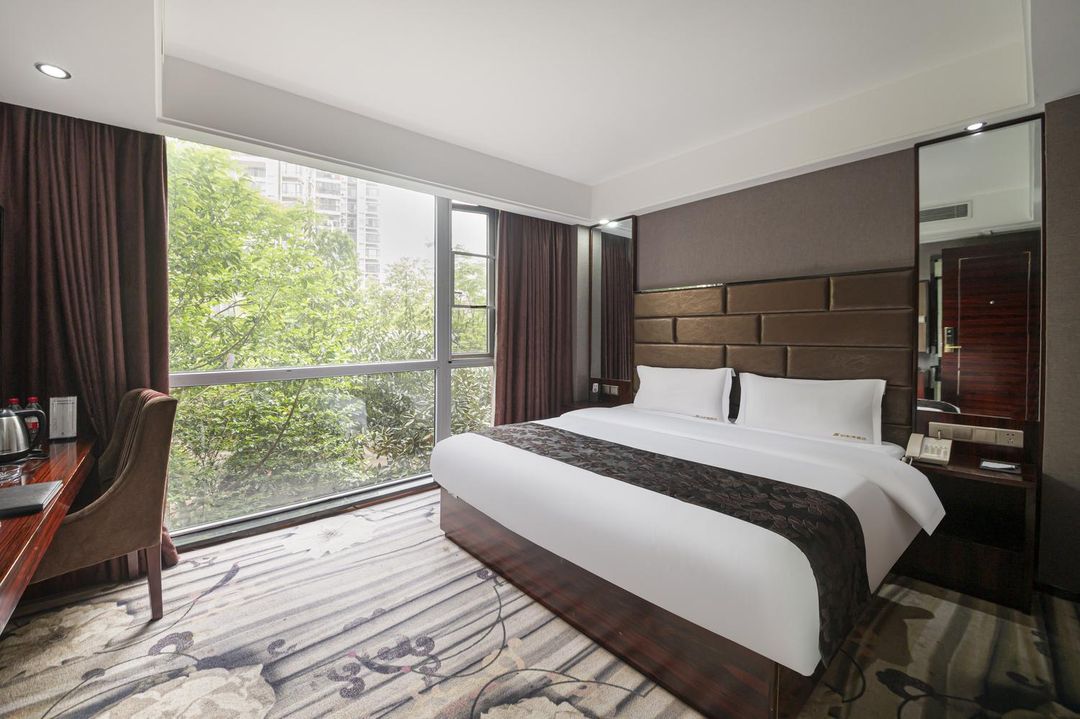Jinlan Hotel Zhuzhou features Riverfront Balcony Rooms with floor-to-ceiling windows overlooking the Xiang River. Guests can enjoy stunning evening views of the illuminated central square and river reflections. Some suites include private terraces, perfect for romantic getaways or quiet moments. The hotel is located on the southern side of the square, just a 5-minute walk from shopping districts and cultural venues.