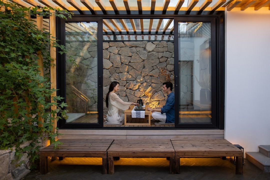 Escape the city hustle at this hidden gem nestled at the foot of the Great Wall! Blending modern aesthetics with minimalist Chinese design, this retreat features serene Japanese-style tea houses and courtyards with maple trees. Rooms are equipped with smart home tech and premium bedding for ultimate comfort. Unleash your fun side with a 120-inch projector, KTV, foosball, and outdoor BBQ pits—perfect for family trips or group gatherings. Explore nearby attractions like Badaling Ski Resort and wildlife parks. Whether sipping tea by the fishpond or stargazing from the rooftop, every moment here feels magical!