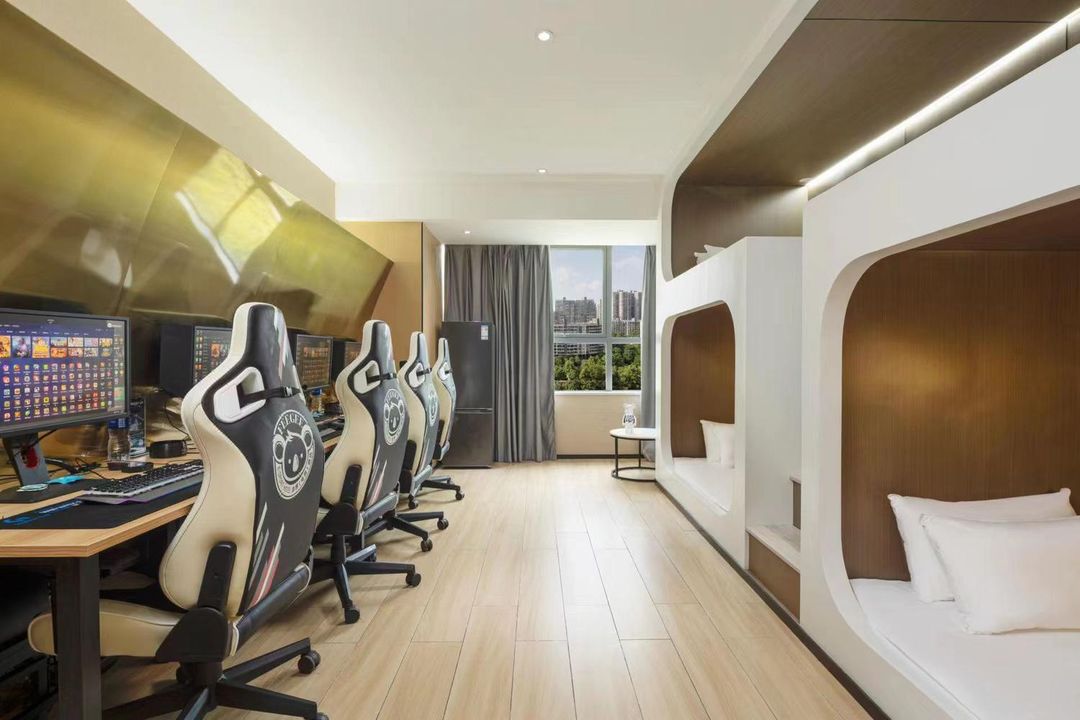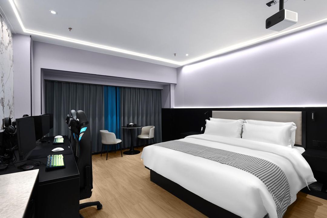 If you're a gaming enthusiast, this is the perfect spot for you! The hotel blends trendy design with gaming vibes, featuring Xiaomi smart systems in every room, JW Marriott-quality mattresses, and Hegii smart toilets for ultimate comfort. The gaming rooms are equipped with 240Hz to 540Hz high-refresh-rate monitors and tournament-grade peripherals for an unbeatable experience. Plus, enjoy 24-hour butler service and laundry facilities. Conveniently located near the subway, it's ideal for both travel and gaming gatherings!