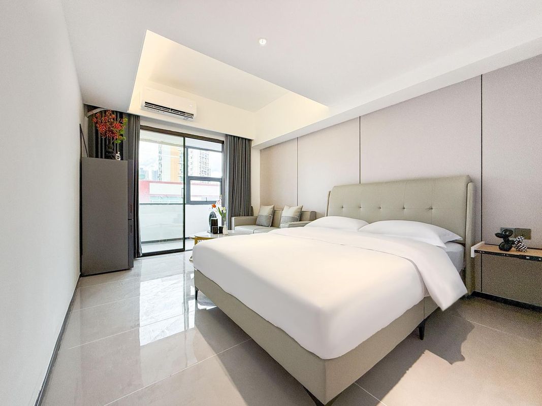 This is a high-end serviced apartment located in Guanlan, close to well-known companies like Foxconn and Xiangshan Technology Park. The apartment is decorated to star hotel standards, equipped with a gym, custom-made furniture, and Hong Kong Airmattress, plus an open kitchen and brand appliances for a comfortable stay. Whether for business or leisure, you can enjoy flexible rental periods and one-stop services. With 24-hour front desk and free parking, it’s incredibly convenient!