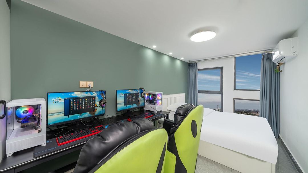 This is a paradise for gaming enthusiasts! With high-end PC configurations including i7 processors and RTX3080Ti graphics cards, plus 144Hz refresh rate screens for smooth gameplay. The location is super convenient, near the subway and shopping malls, and you can even enjoy the Jiuyanqiao night view! The rooms are elegantly designed, and services like laundry and 24-hour front desk cater to all your needs. Whether for gaming or travel, this place offers a premium experience.