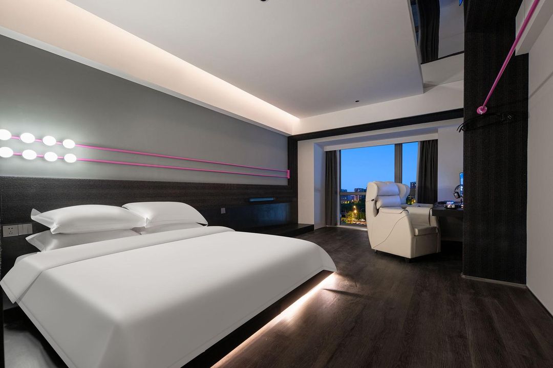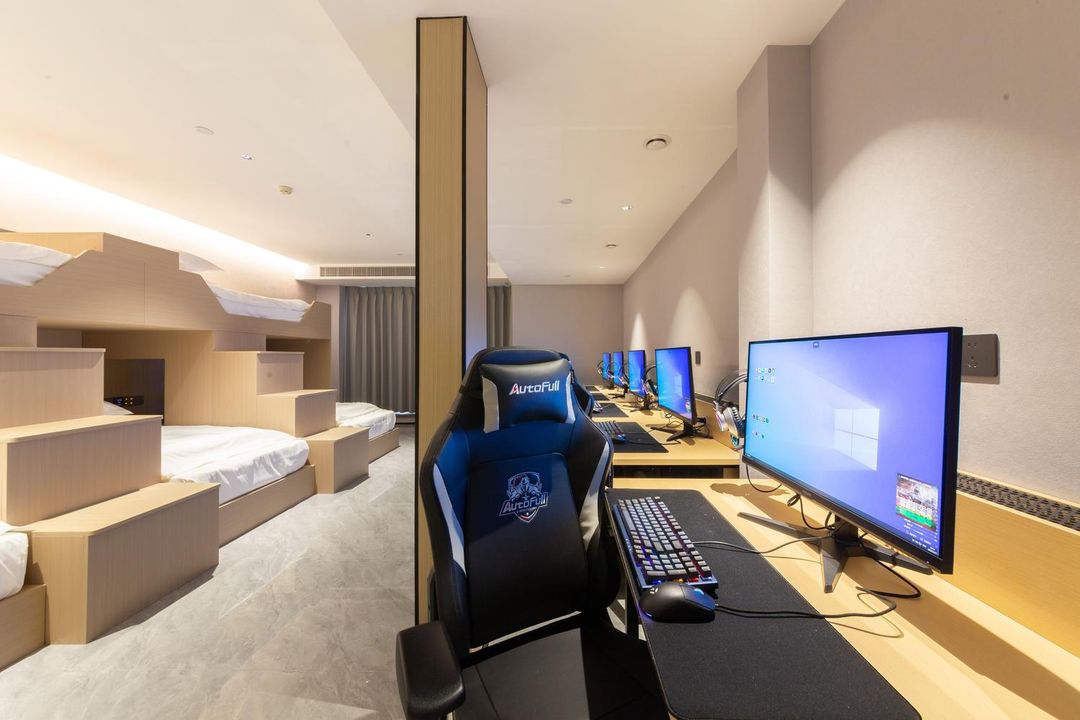 Calling all gamers! This place is a dream come true with top-tier gaming gear like RTX2060/3070 GPUs and 144/165Hz refresh rate monitors for buttery-smooth gameplay. Perfect for squad battles with 6-person rooms and multi-bed suites. Just 300m from Zhongba Subway Station, plus shopping and dining options right downstairs at Pengruili Mall. Enjoy 24/7 front desk, robot service, free parking, and a laundry room—all designed for your comfort. Unbeatable value for an epic gaming getaway!
