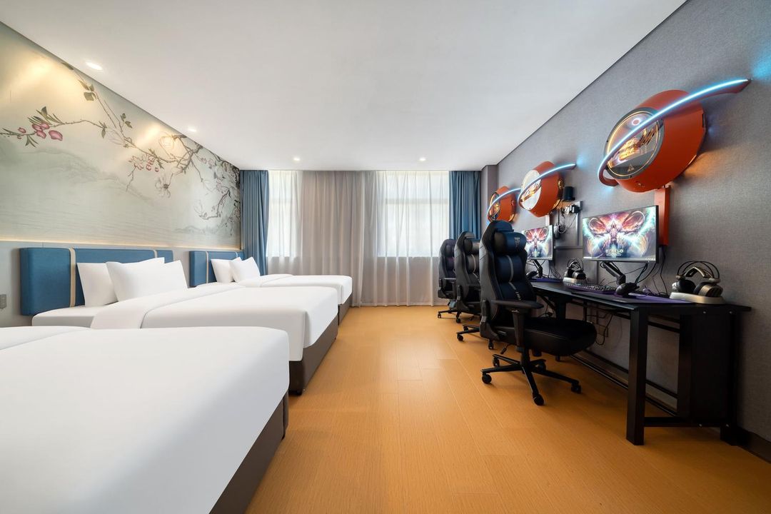 This hotel is perfect for both families and business travelers! Close to the subway, it's easy to reach West Lake and Xixi Wetland, plus free parking makes it great for road trips. The design blends modern aesthetics with functionality, and at night, your room transforms into a private cinema with HD projection and surround sound. Kids will love the dedicated play area and amenities, while parents can relax. Smart voice control and delivery robots add convenience, and the fitness center and café cater to all your needs. Whether for leisure or work, this hotel has it all!