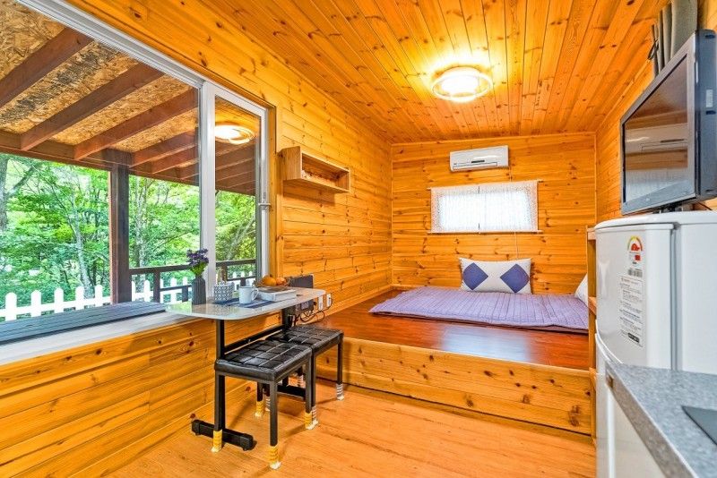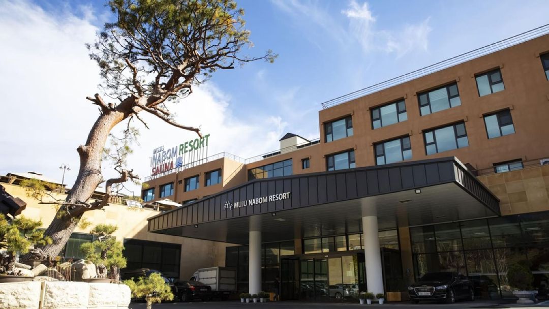 Mokju County Mountain Retreat Spa Lodge offers unique wooden cabins with private outdoor hot springs, nestled at the foot of Chung-bong. Each room features panoramic views of bamboo forests and distant mountain ranges. Just a 10-minute walk leads to the Mokju Nature Trailhead, perfect for sunrise hikes. Book via the HopeGoo app for complimentary shuttle service and local farm-to-table dining packages.