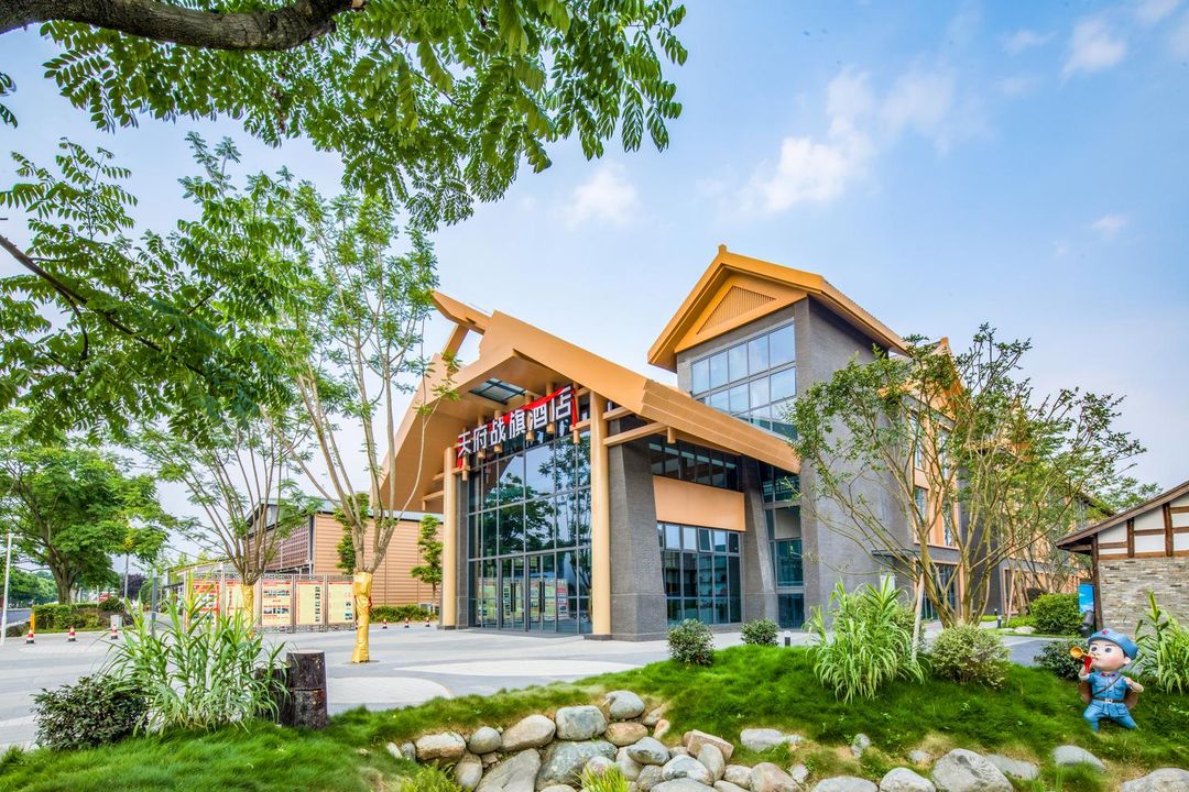 This aviation-themed hotel is nestled in Pengzhou, backed by the Longmen Mountains and beside the Jian River. Just 38 minutes from Chengdu, it offers conference halls, kids’ play areas, and multi-functional spaces—perfect for both business and family trips. Rooms are spacious with HD TVs and separate shower areas, plus perks like free parking and airport transfers. Nearby attractions include Baoshan National AAAA Scenic Area and Haiwozi Ancient Town, making it a great base for explorers.