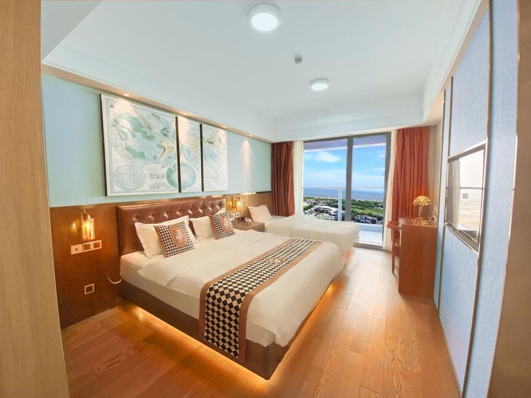 This hotel is a delightful surprise! Just a few steps away from the beach area, you can enjoy the stunning Jiuyan Bridge night view, perfect for a romantic getaway. The hotel boasts top-notch facilities, including a multi-function hall and executive floors, making it ideal for both business and family trips. With 24-hour front desk service and airport transfer, your needs are always taken care of. The rooms are elegantly decorated and fully equipped, with thoughtful touches like bottled water and slippers. The leisure area offers various amenities to help you unwind. Highly recommended for its great value!