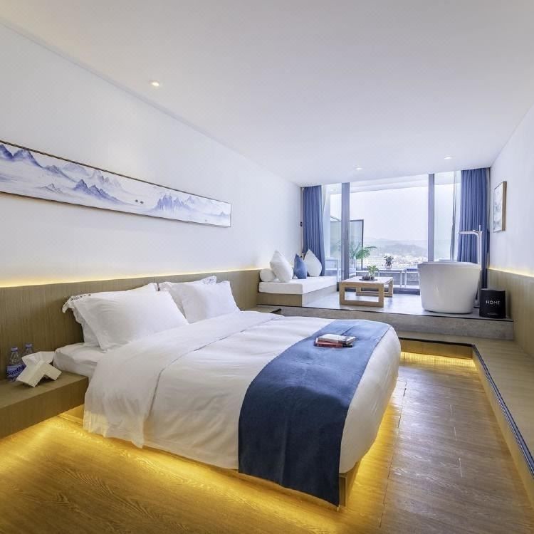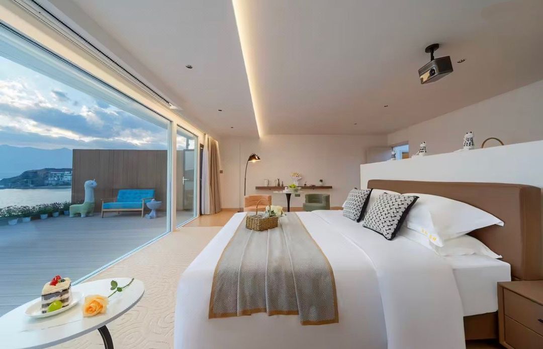 This hotel is a paradise for sea lovers! Located right on Happy Coast of Jinshitan, you can step onto the beach from your room – truly surrounded by ocean views! The rooms blend modern design with Chinese aesthetic, featuring smart home systems for ultimate comfort. The private balcony offers breathtaking sea views, and you can even enjoy movie nights with the projector! Pet-friendly policies mean your furry friends can join the vacation. With BBQ areas, home cinema, and fitness center, there's never a dull moment. Rated 4.5/5, it's a steal for such quality – don't miss out!