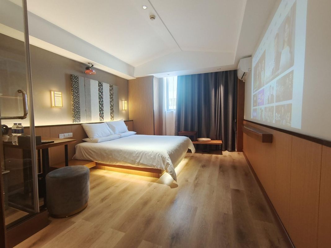 This is a tranquil oasis in the city, featuring modern Chinese-style design with artistic details everywhere. Rooms are equipped with high-quality Muse mattresses and XGIMI projectors for a cinema-like experience. Enjoy tea in the tea room or let kids have fun in the children's play area. Whether for family trips or business travel, this hotel meets all your needs. Free parking and 24-hour front desk service make your journey even more comfortable.