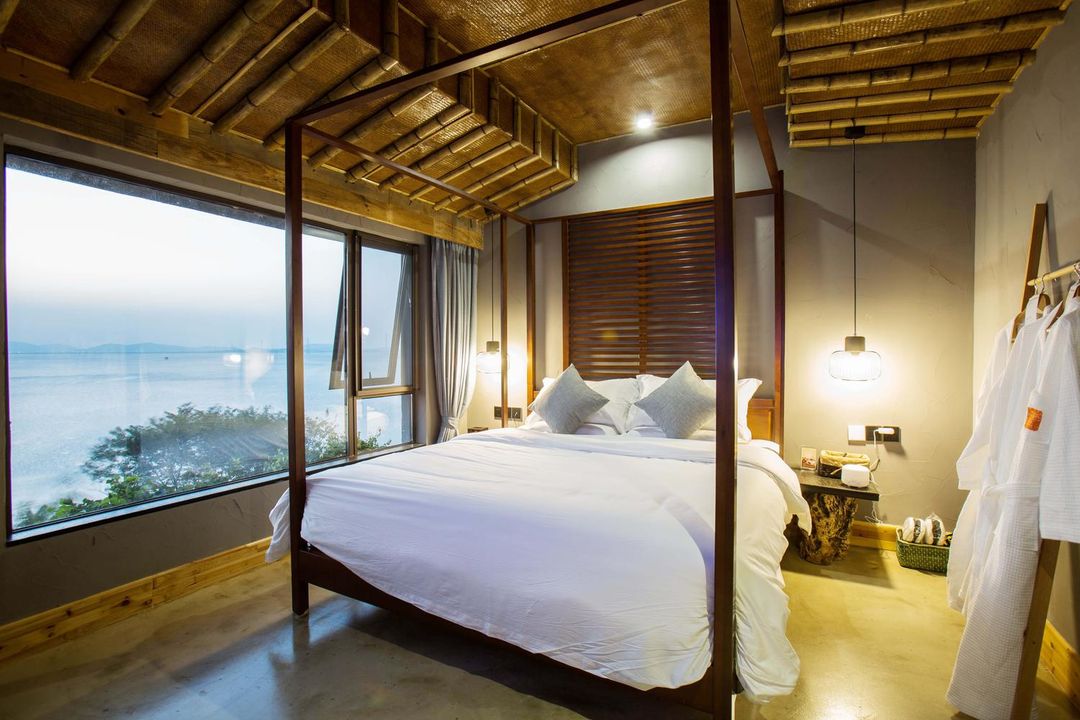 This is a hidden lakeside paradise, nestled between mountains and Taihu Lake, offering breathtaking views. The rooms feature organic cotton bedding, 100% formaldehyde-free, ensuring a comfortable and healthy stay. Most rooms have floor-to-ceiling windows, framing the stunning lake scenery—summer blooms with lotuses, winter serenity like a gem. Enjoy the infinity pool, BBQ area, fishing, and fruit-picking activities, or explore the nearby ancient village with well-preserved Ming and Qing architecture. Stroll through bamboo paths with your loved one under twinkling lights—pure romance!