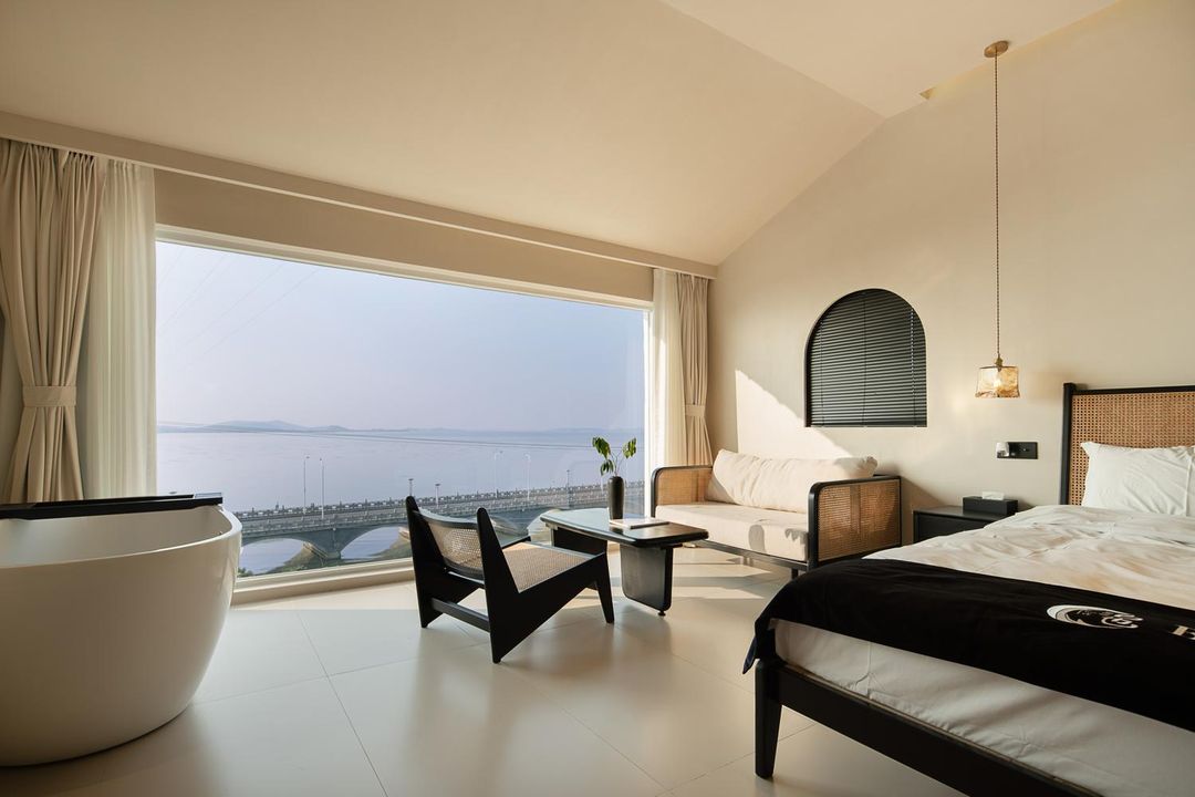 This is a hidden lakeside paradise, nestled between mountains and Taihu Lake, offering breathtaking views. The rooms feature organic cotton bedding, 100% formaldehyde-free, ensuring a comfortable and healthy stay. Most rooms have floor-to-ceiling windows, framing the stunning lake scenery—summer blooms with lotuses, winter serenity like a gem. Enjoy the infinity pool, BBQ area, fishing, and fruit-picking activities, or explore the nearby ancient village with well-preserved Ming and Qing architecture. Stroll through bamboo paths with your loved one under twinkling lights—pure romance!