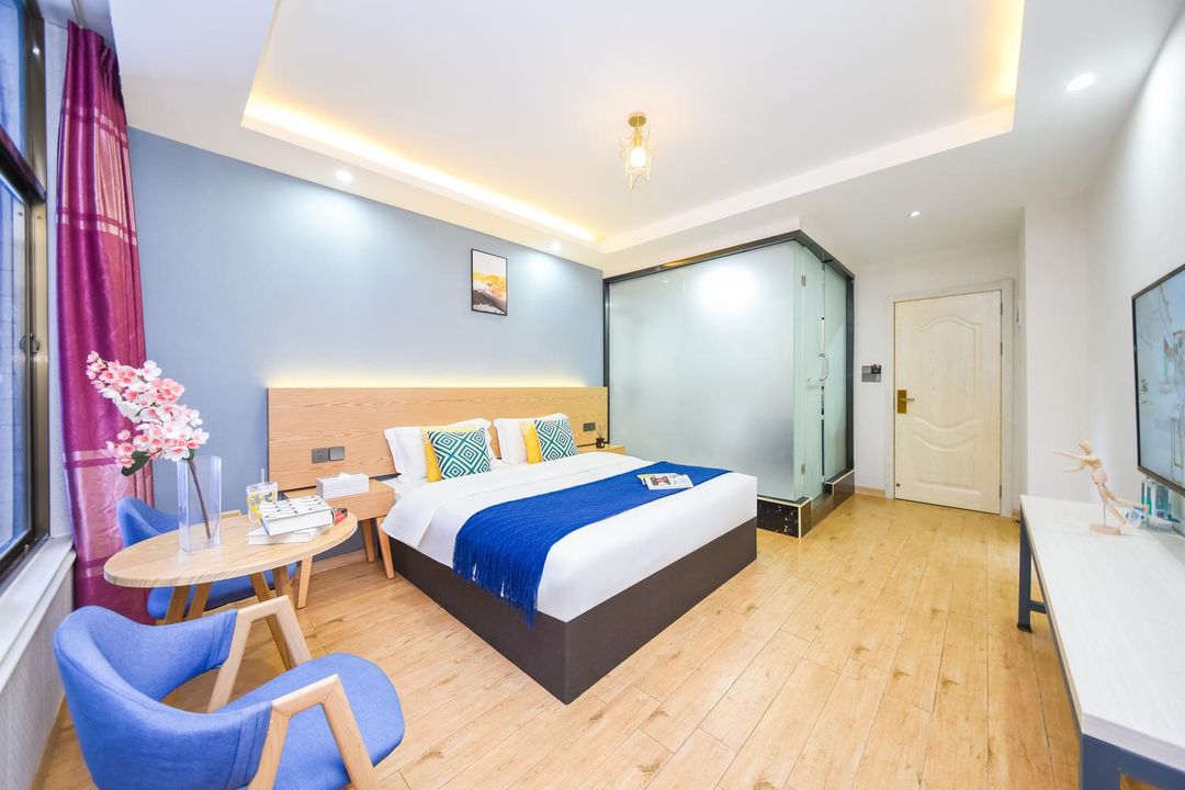 This is a smart hotel with an artistic vibe, inspired by the tale of Zhuang Zhou's Dream of a Butterfly, featuring 19 unique themed rooms. The loft-style rooms come with floor-to-ceiling windows, offering stunning city night views. Conveniently located right next to the subway station, getting around is a breeze. With a kids' play area and home theater, it’s perfect for families. Voice-controlled rooms add a touch of modern convenience. The friendly staff, great environment, and high value for money make it an ideal choice for your stay!