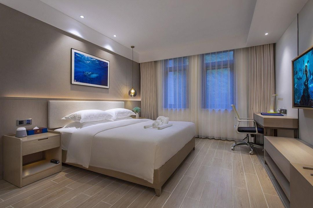 This hotel is perfect for those who love water sports and vacation! Located right next to Wuzhizhou Island, you’ll find yourself steps away from the surfing paradise of Houhai Bay, with plenty of seafood restaurants and night markets to explore. Rooms are equipped with smart home devices, allowing you to control lights and AC with your voice, plus a 60-inch TV and luxurious bedding for ultimate comfort. Whether you’re traveling with family, pets, or on a romantic getaway, the pet-friendly policy and kids’ play area make it ideal. Great value and close to the beach—highly recommended!