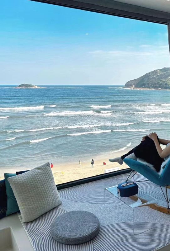 This hotel is a paradise for sea view lovers! Wake up to 180-degree panoramic ocean views of Wuzhizhou Island through floor-to-ceiling windows. Enjoy movies on a 150-inch screen with premium audio systems - perfect for cozy nights in. Just steps away from the beach and iconic lighthouse, it's also pet-friendly! Their butler service includes free shuttle to Wuzhizhou Island. Don't miss the live music at the cave-themed cafe bar. With surfing packages and infinity pool, every moment here is Instagram-worthy!