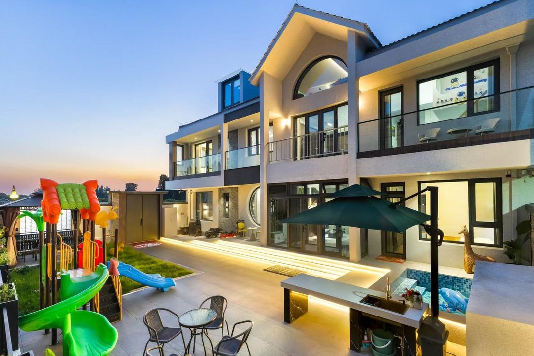 This is the perfect spot for family and friends gatherings! With 6 rooms and 7 double beds, it can accommodate up to 17 people, and butler service is available to cater to all your needs. The basement features KTV, indoor hot springs, and a kids' play area—your little ones will have a blast! The garden on the first floor boasts a huge swimming pool and BBQ area, perfect for stargazing at night. The cozy rooms on the second and third floors include starry sky rooms and sunlit bedrooms, with a terrace for close-up views of the night sky. 24/7 surveillance and professional cleaning ensure a safe and comfortable stay.