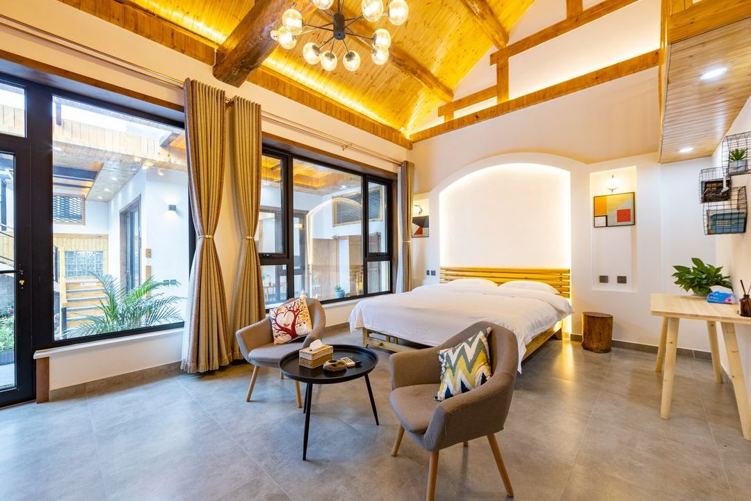 Moutianyu Skyview Lodge is ideally situated just 700 meters from Pass 20, offering unobstructed views of the wall snaking across the mountain ridge. All rooms feature floor-to-ceiling windows and private balconies with adjustable sunshades. The hotel provides a private sunrise viewing platform, allowing guests to capture the first light on the watchtower without crowds. For photography enthusiasts, the property includes a dedicated night sky observatory with tripod stations and astrophotography guides. HopeGoo through HopeGoo grants access to exclusive twilight photo sessions and digital memory albums.