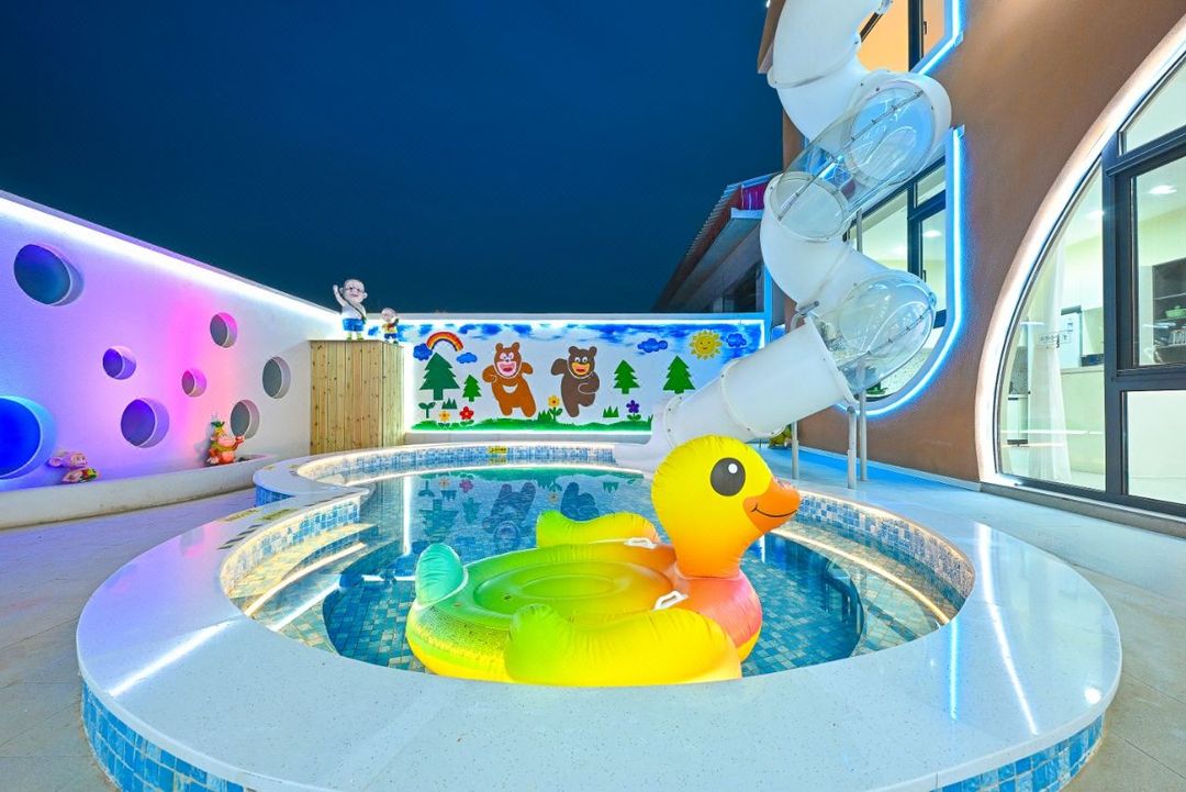 This homestay is a perfect family getaway! Spacious luxury suites with private hot springs and kid-friendly rooms come with play areas to keep children entertained. Meet adorable peacocks and alpacas, zoom down the rainbow slide, or swim in the indoor heated pool. Surrounded by vast forests, you can enjoy fishing, BBQ, or even karaoke nights. Conveniently located near Science City and scenic spots like Yanxi Lake, it’s an ideal blend of nature and fun for everyone!