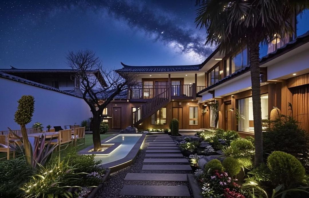Tucked away in the ancient town of Lijiang, this oasis blends minimalist zen aesthetics with lush greenery. Wake up to birdsong and golden sunlight filtering through your window—perfect for unwind. Kids adore the playground and friendly dogs, while adults relish tea ceremonies, KTV, or garden barbecues. With seamless airport transfers, stunning night views, and a 4.9/5 rating, it’s a pet-friendly haven where every detail whispers serenity. Come, slow down and savor the magic!