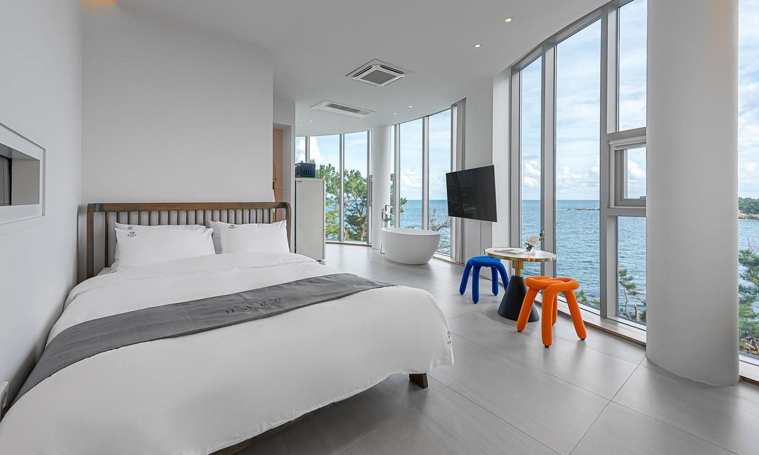 Dawn Coast Boutique Hotel features east-facing panoramic balconies directly overlooking the East Sea, providing the perfect vantage point for watching the sun rise over the horizon. The hotel offers a sunrise alert service and complimentary hot coffee delivered to your room. Additionally, guests can unwind in the open-air hot spring baths under the stars. Reserve your preferred sunrise-view room via the HopeGoo app for guaranteed access.