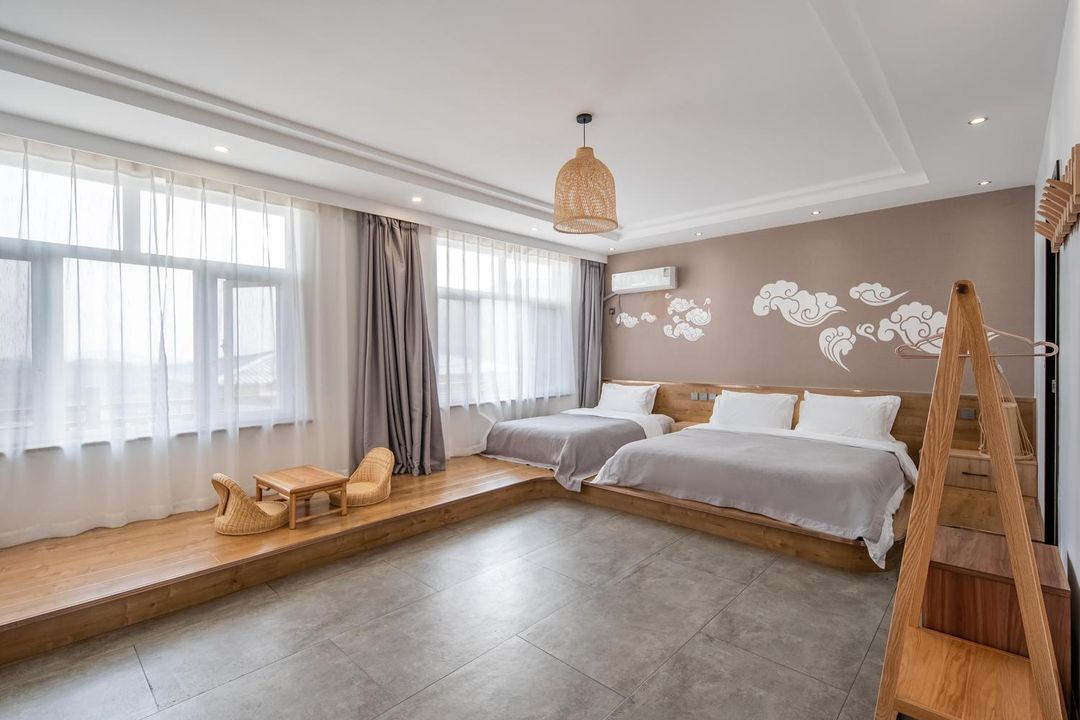 Tucked against lush mountains, this hidden gem offers standalone villas with floor-to-ceiling windows and authentic Chinese décor featuring rosewood furniture—each room uniquely styled. Private cabins with courtyards and home theaters add exclusivity! Enjoy free proposal/birthday setups for unforgettable moments. Facilities abound: tea rooms, KTV, mahjong, kids' play areas, and outdoor BBQ pits. Nearby attractions like Pan Mountain Grass Skiing are just 5 minutes away, with caves and ancient streets within 15 minutes. Pet-friendly with valet parking, it’s perfect for families or group getaways!