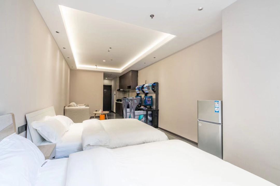 This apartment offers amazing value! Right above the subway station, with a shopping mall, supermarket, and cinema downstairs—everything you need is at your fingertips. The rooms are spacious with floor-to-ceiling windows, big-screen projection, and even a private washer. Comfy bedding and great soundproofing make it perfect for business trips or family vacations. The friendly front desk and local food spots nearby are just the cherry on top!