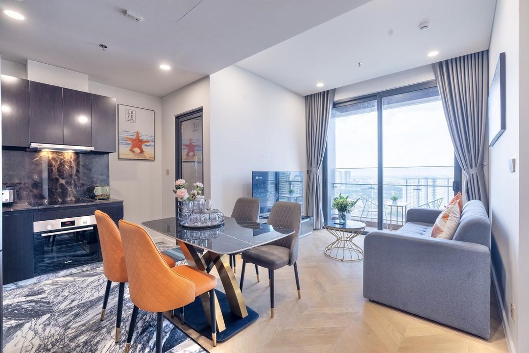 This luxury apartment features a infinity pool with stunning city skyline views—perfect for relaxing! Every unit comes with 55+ inch TVs, high-speed internet, and smart toilets for ultimate comfort. Great for families with kids' playgrounds and water slides to keep the little ones entertained. Business travelers will appreciate the executive lounge and meeting rooms. Plus, the airport shuttle makes getting around a breeze!