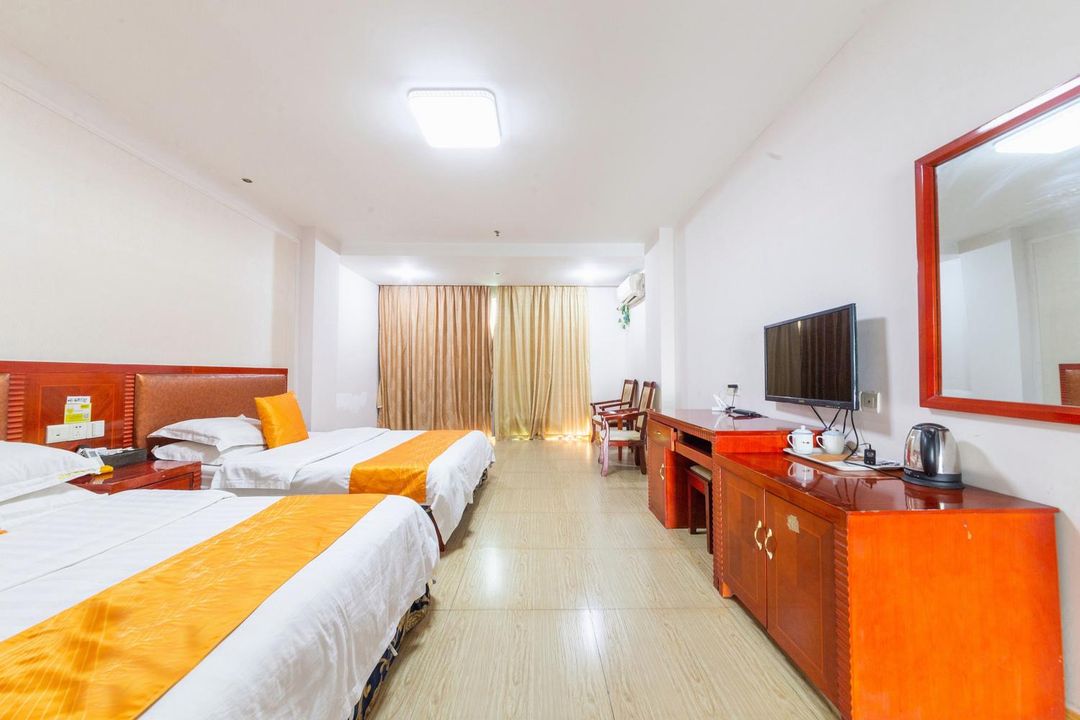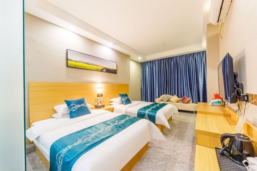 This hotel is your ultimate getaway! Nestled in the heart of Guangzhou's Wanda Cultural Tourism City, it offers direct access to South China's largest indoor ski resort "Snow World" and theme parks. The massive mall "Rongchuang Mao" is just a 5-minute walk away—perfect for dining and shopping! Rooms feature luxe minimalist decor with gold-accented furniture and vibrant textiles, plus a 100-inch projector screen for movie nights. Enjoy Jiuyan Bridge night views from your window! With executive lounge, pet-friendly policy, laundry facilities, and kitchenettes, it caters to both families and business travelers. Rated 4.7/5, guests rave about its value and attentive service. Don’t miss out!