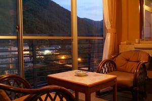 Chousha-tei Ryokan is renowned for its east-facing panoramic rooms that face the Fukiware Falls and the rising sun. Guests are greeted with hot tea and warm blankets starting at 5:00 AM, ensuring a peaceful morning experience. The property features a dedicated sunrise viewing terrace and free tripod rentals for photography enthusiasts.