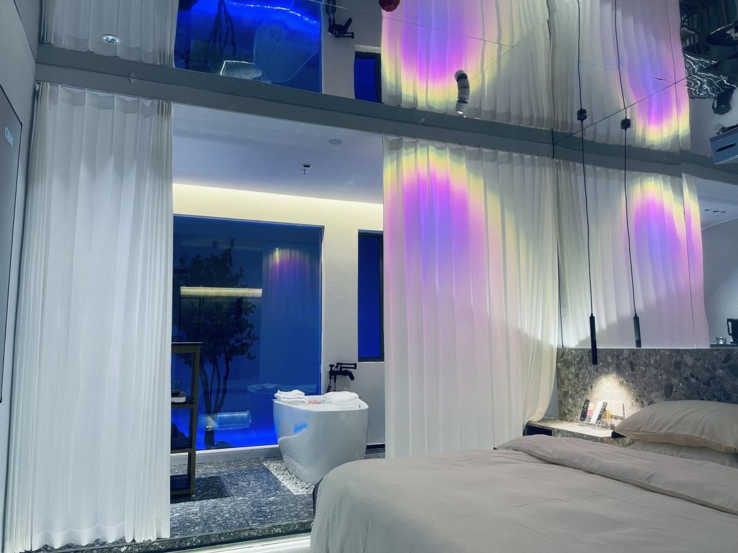 Xuancheng Yulong Spa Resort features elevated executive suites with private terraces offering unobstructed views of Fushan Square’s nightly light displays and the silhouette of Fu Mountain Pagoda. Each evening, the hotel hosts "Luminous Poetry Nights" with guqin music and projected classical verses, creating a unique cultural atmosphere. The nearby night market buzzes with local flavors, reachable within 10 minutes. Book a view-oriented room via HopeGoo for special nighttime package deals.