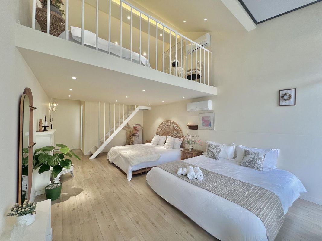 This guesthouse is a perfect getaway for families and friends! Just 10 minutes to Disneyland, with free parking and shuttle service. The Nordic-meets-cream style design is cozy and inviting, featuring family rooms and a home theater. Enjoy barbecues and fishing by the riverside garden, or admire the Jiuyan Bridge night view. Rooms are equipped with Mercury bedding and Japanese toiletries for ultimate comfort. Nearby, you’ll find old streets and supermarkets for all your needs. A truly stress-free stay!